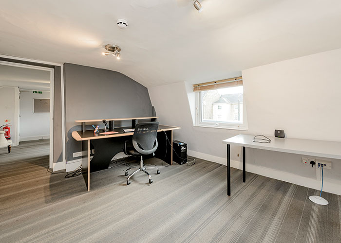 The property comprises two adjoining office buildings with shop fronts, planned on basement, ground and two upper floors. Externally there is a rear garden: depth approx 15.8 m, width approx 10 m wide. The building is currently arranged and fittied out as digital editing suites, podcast suites, preview cinema, reception and break out area.